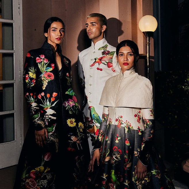Driven by passion and guided by perfection, Rohit Bal draws inspiration from diverse sources, including nature, mythology, and Mughal artistry. His use of luxurious fabrics, elaborate embroidery, and iconic motifs like the lotus and peacock reflects a commitment to celebrating India’s rich heritage while appealing to modern sensibilities.
